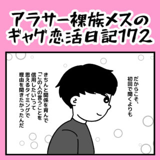 アラサー裸族メスのギャグ恋活日記【172】 ▼第1話はこちら ※体験談をもとに創作したフィクション漫画です。 ※登場する人物・名称・会話内容等は全て架空の設定となり、個人が特定されるような内容は一切ありません。 ▼▼次...