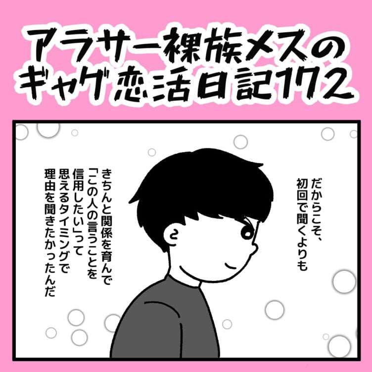 アラサー裸族メスのギャグ恋活日記【177】 ▼第1話はこちら ※体験談をもとに創作したフィクション漫画です。 ※登場する人物・名称・会話内容等は全て架空の設定となり、個人が特定されるような内容は一切ありません。 ▼▼次...